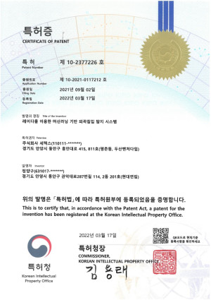 특허증(레이다를이용한 머신러닝 기반 외곽침입 탐지 시스템)