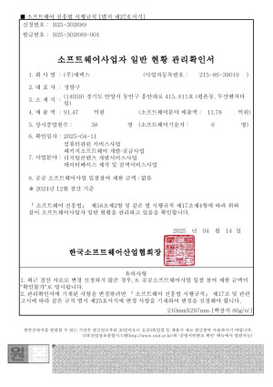 직접생산확인서.소프트웨어유지및지원서비스(2025갱신